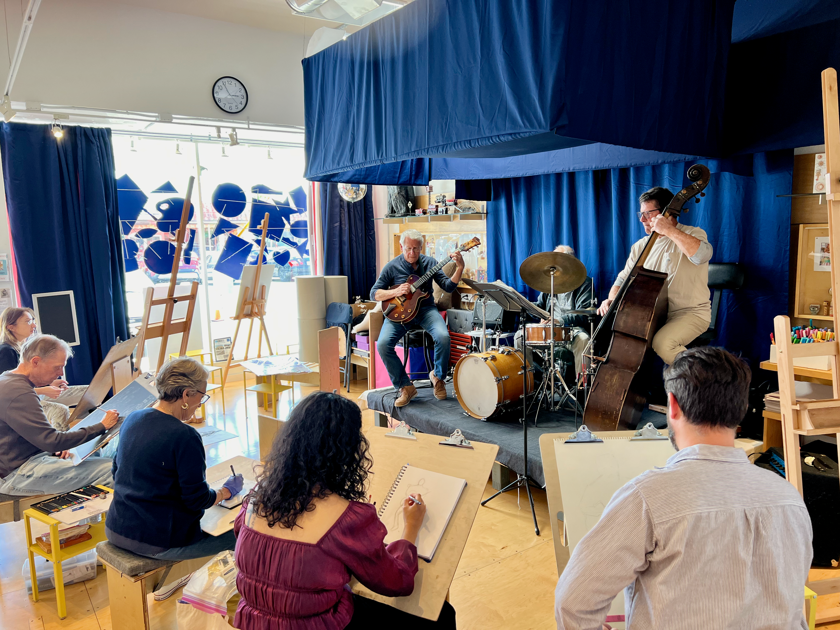 Our monthly Art & Jazz in the Afternoon workshops are a blast! Artists enjoy drawing while listening to live music.